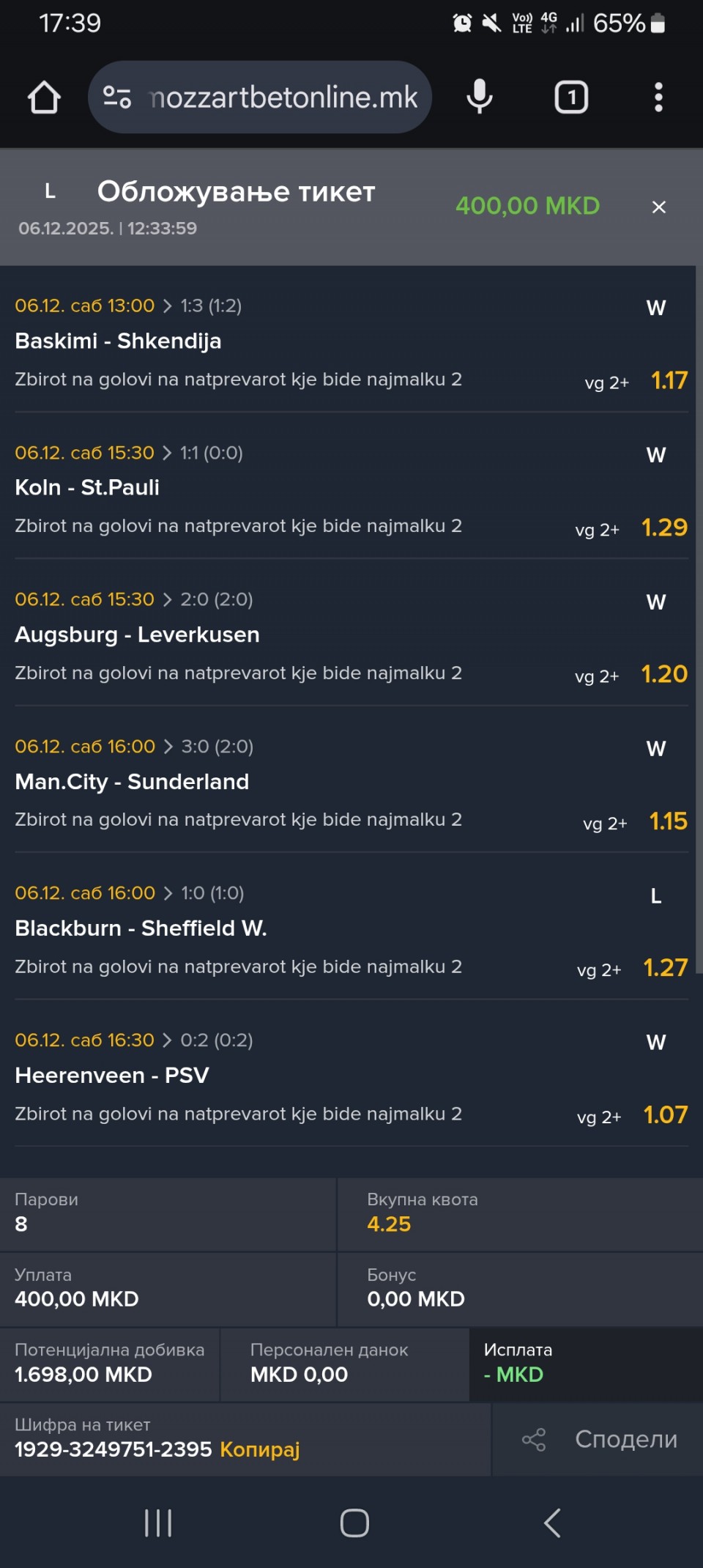 Dvoumio sam se izmedju Osasune i Mancestera i na kraju razum kaze Osasuna. Ne verujem Unitedu, iako su Wolvesi blago receno uzasni i vec su sad mislima u Championshipu. Englezi su spaljeni, tu nema pravila a Manco je danas broj 1 vecini na tiketu...Dvoumio sam se izmedju Osasune i Mancestera i na kraju razum kaze Osasuna. Ne verujem Unitedu, iako su Wolvesi blago receno uzasni i vec su sad mislima u Championshipu. Englezi su spaljeni, tu nema pravila a Manco je danas broj 1 vecini na tiketu. Ovamo Osasuna nije nista specijalno ali ipak igra na domacem terenu protiv zadnjeg Levantea pa verujem da mogu iscupati 3 boda i malo skociti na tabeli. Vrlo su neefikasni pa ocekujem veoma dosadan mec i barem taj pobedonosni gol Osasune. Srecno!