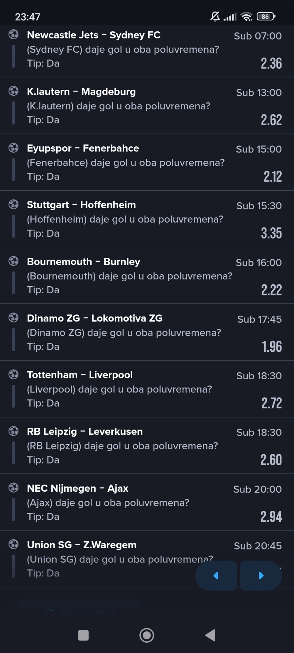 20.12.2025. 14:00h Andorra - Dep. La Coruna; tip: X; kvota: 3.30; uplata: 1.440,00 din.; isplata: 4.752,00 din.