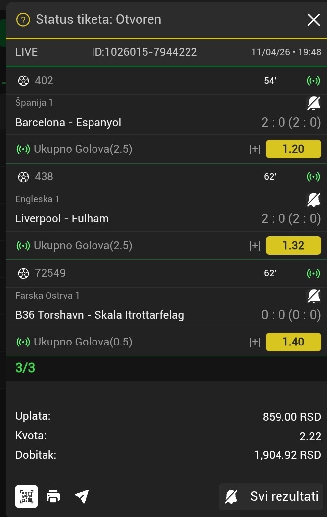 1X je isto sjajan, verujem preko 3 kvote.