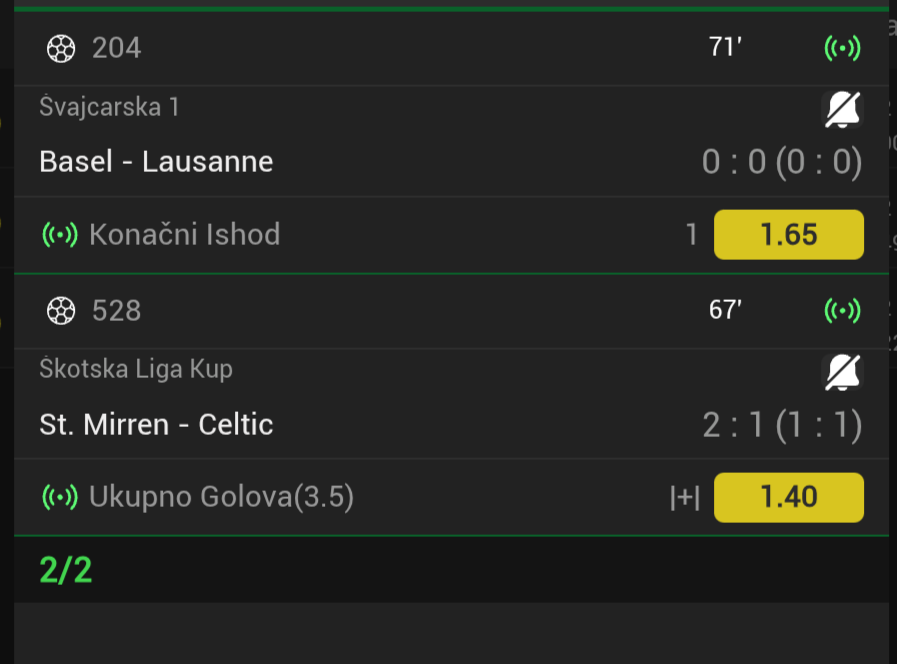 Vidim da dosta ljudi danas uplaćuje na Fener. Obično takve situacije znaju krenuti u kontra smjeru, pa možda vrijedi razmisliti o singlu - da gost postigne gol u prvom poluvremenu (3.40) ili barem na cijelom meču (1.80).
