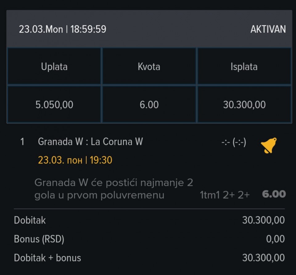 Možda uveče bude još jedan meč, čekam da vidim kakav će biti raspon kvota i još neki faktori da li će se poklopiti...