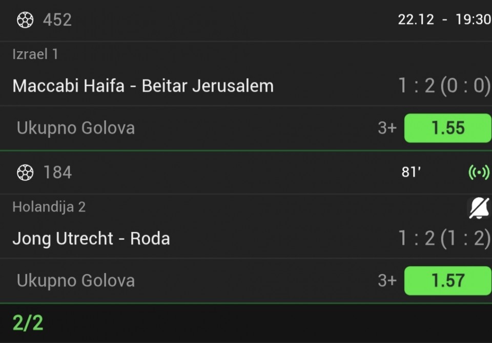 LIVE : MLADI UTREHT - RODA 2.5+ ( kvota 1.8 )...q