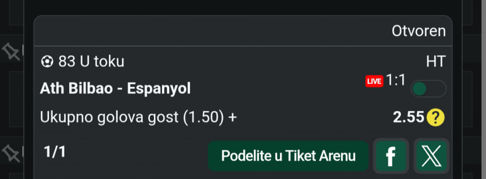 tip: over 1.5 (65 minut trenutni rezultat 1:0)
