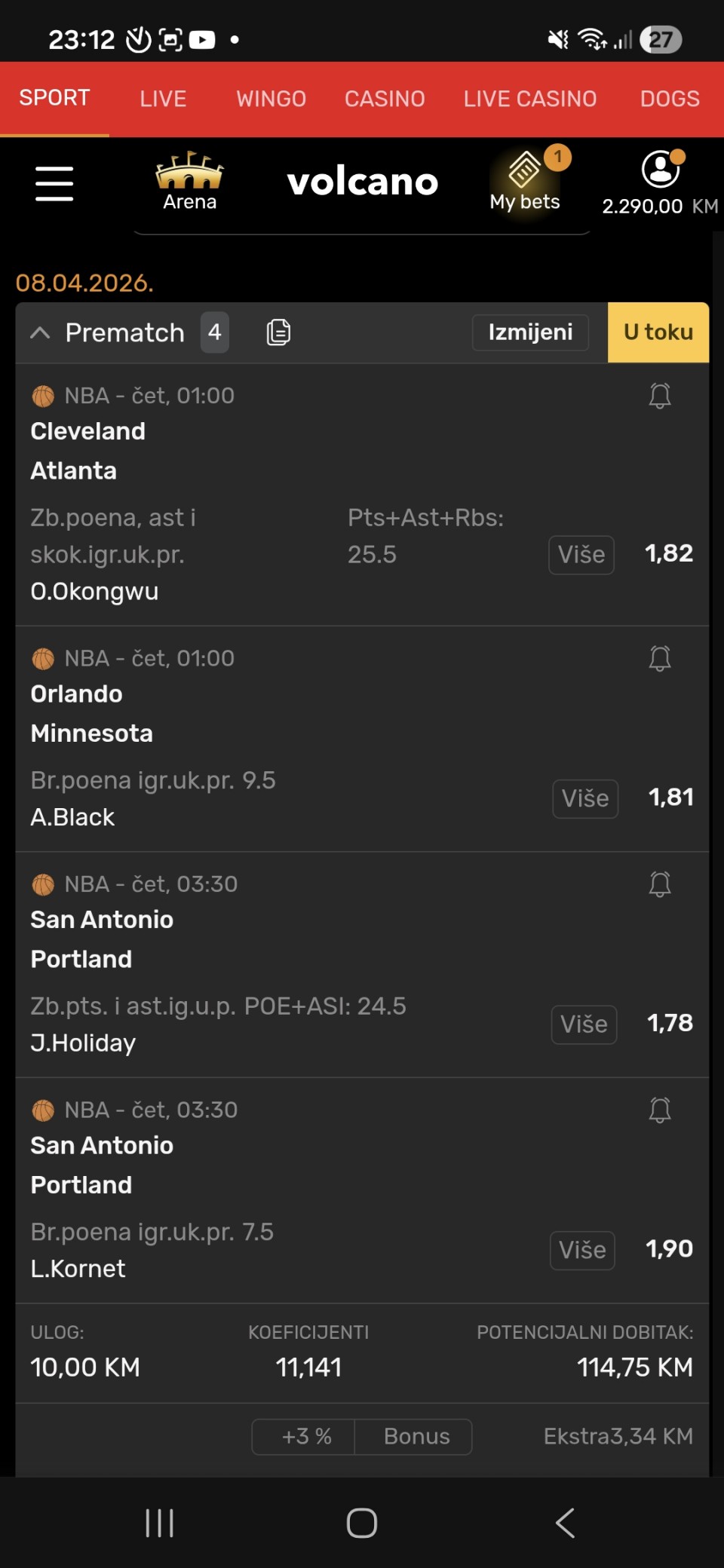 Meč Spursi-Blazersi meni najzanimljiviji noćas. Blazersi odlično igraju, sve više egal tekmi, a posljednja je bio produžetak sa Nuggetsima. Očekujem da će pružiti baš hrabar otpor Spursima noćas koje ako ne bude služio šut mogu i izgubiti. Naime Spursi noćas bez 2 glavna igrača, nosioca ekipe, a to su Castle i Wemby. U njihovom odsustvu očekuje se da potegnu Vassel, Harper, Fox, Johnson i ostatak družine, ali imaju jako visoke granice i nisam smio nikoga od njih uzeti jer Spursi znaju jako dobro raspodjeliti poene, pobijediti utakmicu, zabiti 120+ koseva, a samo 1 igrač dođe OVER!