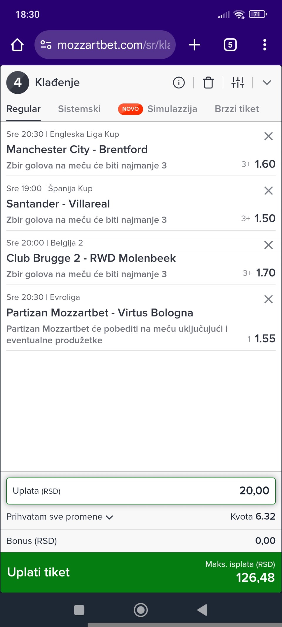 Live Rezispor 6,5+1,46 ,7,5+3,46 , D5,5+ 2 10 ,74 min 5-1 OPET manji ulog, Kup je u pitanju Sretno ko prati.Sretno Maxbet
