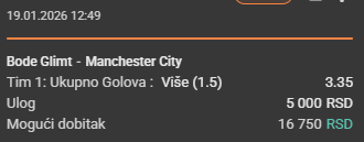Da se ovaj meč ne igra u Norveškoj u sred januara i da trenutno u Sitiju nije bolnica, verovatno nikad ne bih odigrao ovaj tip. Ali situacija je takva kakva jeste, i u ovom tipu ima nekoliko plus i minus stavki, pa da...4. nedelja - 1. korak ⚽