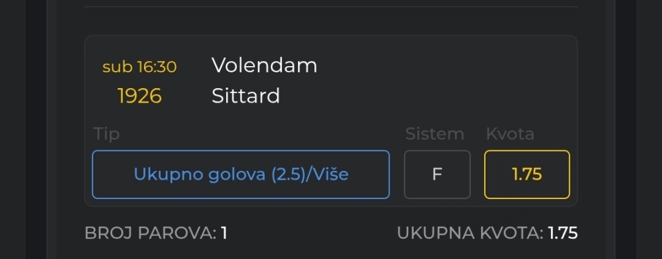 tip: over 3.5 (79 minut trenutni rezultat 1:2)