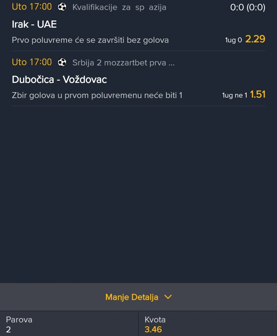 Mislim da ovdje Bosna ne moze do pobjede ali do gola svakako može, motivisani su ali to nije dovoljno potreban je pobjednički mentalitet koji u ovom trenutku sa naših prostora ima samo Hrvatska, igrao bih ovdje i kartone ali u mozzartu nema toga u ponudi, očekujem čvrstu utakmicu i rezultat: 1:1 ili 2:1