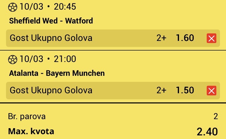 Po meni lose, ako je iko nesto ispratio nadam se da su bili dobitni parovi.