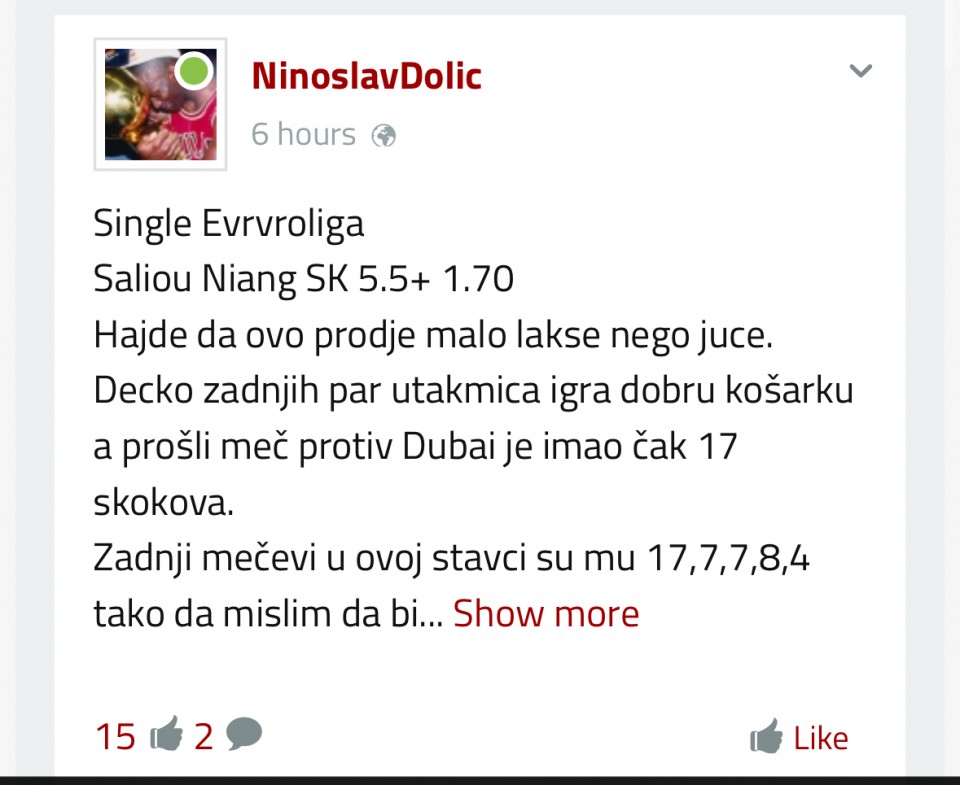 Cini mi se da je u prvoj cetvrtini osetio neku nelagodnost sto se noge tice, medjutim na kraju nas je mozda to i kostalo (ako zbog toga nije ulazio) 5:43 min u prvoj cetvrtini mi je unistilo projekciju od 15ak min, gde je uzeo samo 1 asistenciju ali sam svakako zadovoljan prognozom, jer sam prilicno siguran da je igrao minutazu koju sam ocekivao da bi presao granicu, medjutim samo 5' za njega, i nije bilo realno da predje granicu u 5' na parketu za ceo mec.