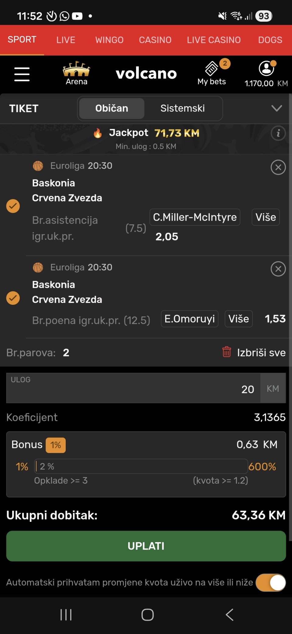 Drugi tiket u komentaru jer nemam vremena da pisem analizu jer prvi mec pocinje za 20 minuta. Sretno🏀
