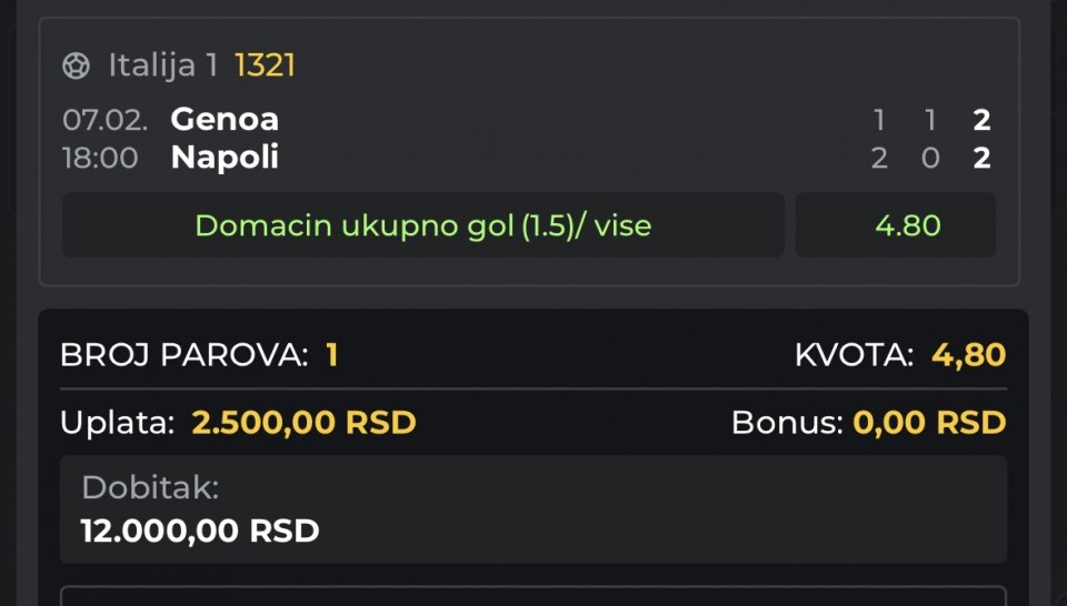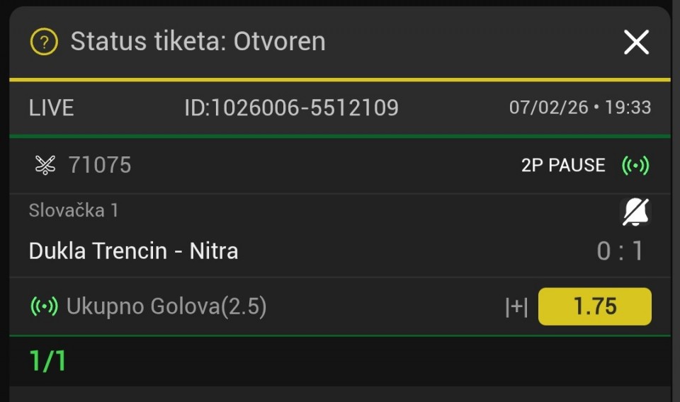 tip: over 1.5 (66 minut trenutni rezultat 0:1)