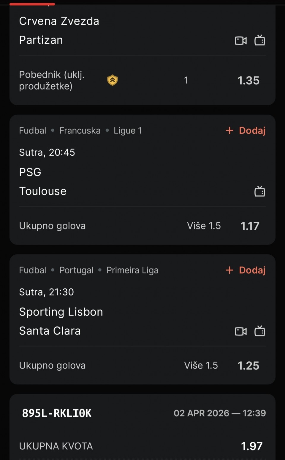 Dobar dan, danas dva tiketa sa derbija i mozda kasnije iskombinujem ostale meceve EL