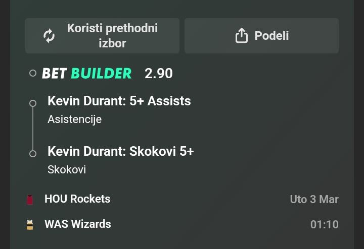 Kevin Durant: 5+ skokova i 5+ asistencija @2.90