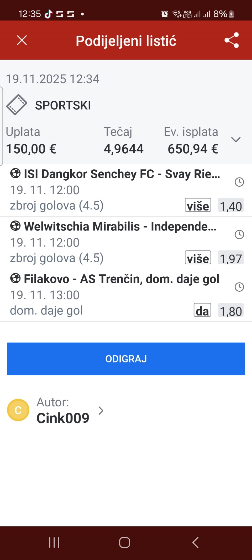 S obzirom da je Trencin primio gol na poslednje 2 kup utakmice, a isto tako imaju 3. najgoru odbranu u ligi sa 15 primljenih golova na 7 utakmica. Mislim da vredi probati tip G1+. Prelaze na osecaj 2-1 (70.00)/1-2 (22.00). Srecno!