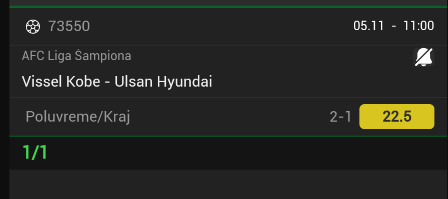 🇯🇵 11:00 Kobe - Ulsan HD minimalan ulog DI1+&2+ (1.70)