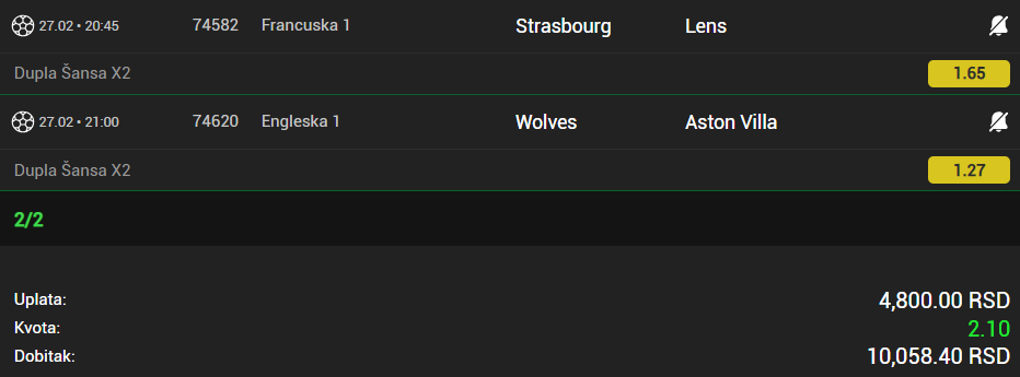 tip: sledeći gol 2 (60 minut trenutni rezultat 0:2)