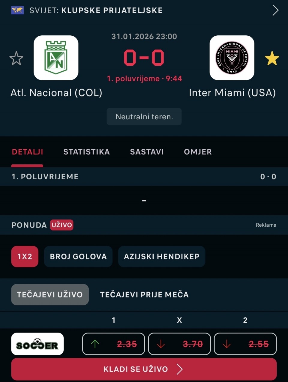 Moj današnji izbor, juče nažalost loš odabir i pad na Bayern 😡