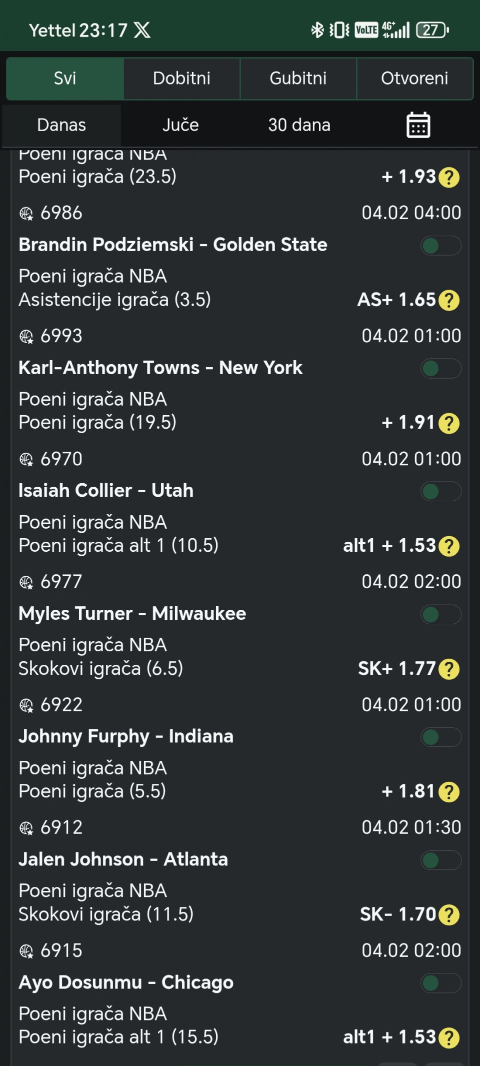 Aberdin-Seltik X2 (1,11)...Kad igram ono sto inace ne igram (2+), onda tako i prodjem.😡