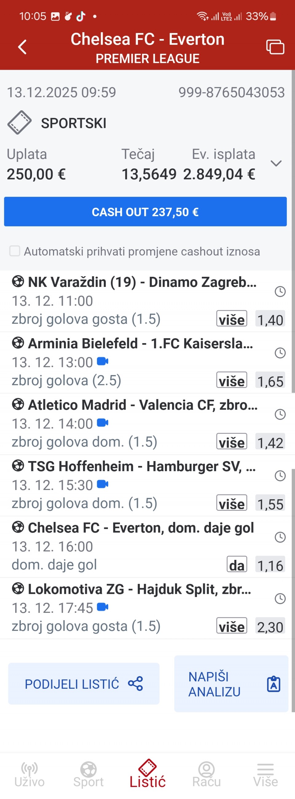 Vidim da dosta ljudi danas uplaćuje na Fener. Obično takve situacije znaju krenuti u kontra smjeru, pa možda vrijedi razmisliti o singlu - da gost postigne gol u prvom poluvremenu (3.40) ili barem na cijelom meču (1.80).