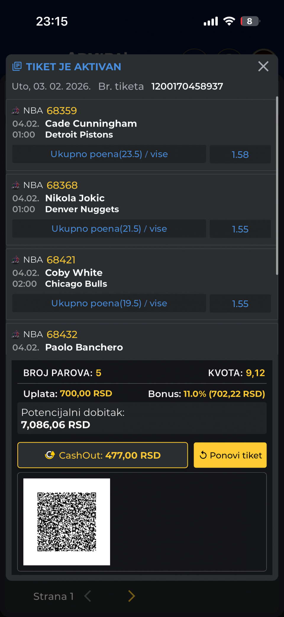 ukupna kvota: 2.18