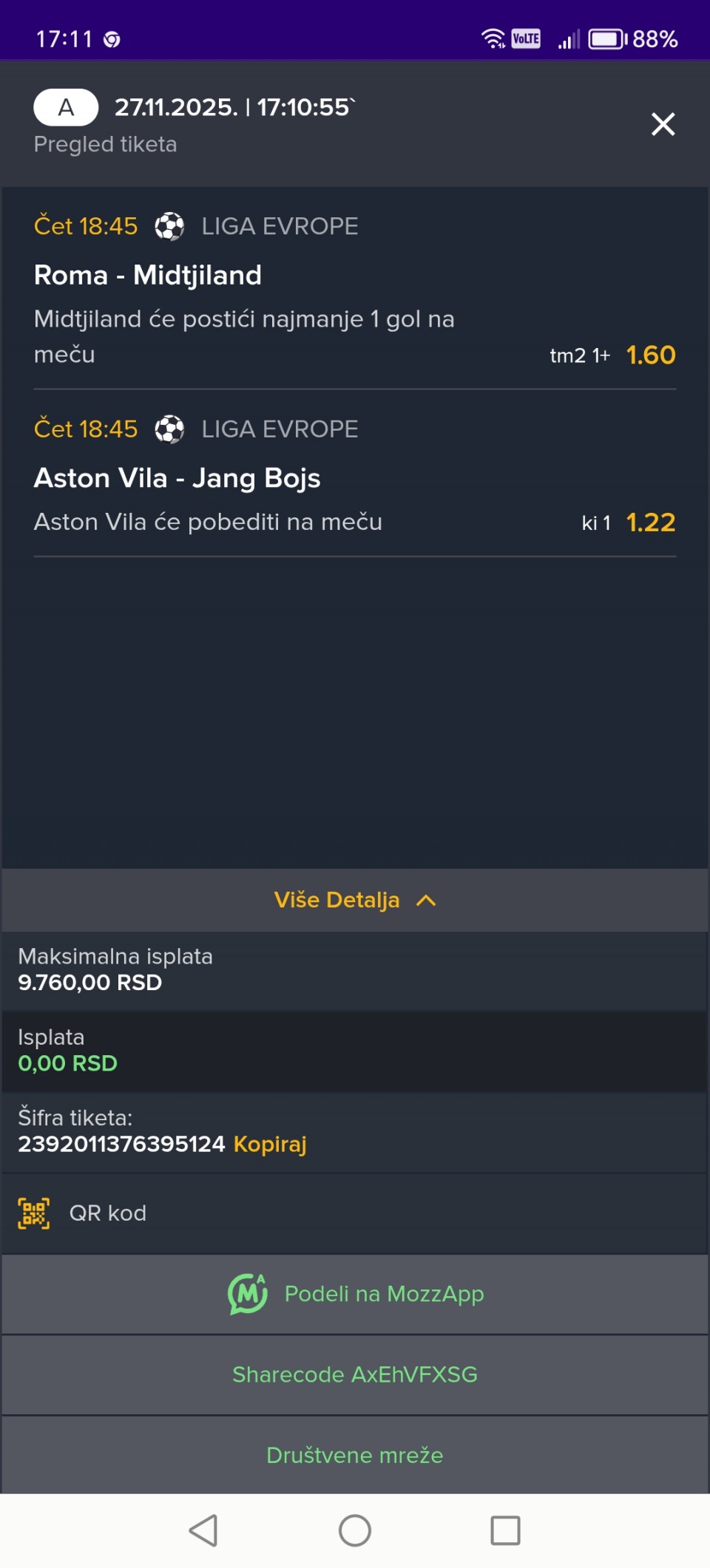 Na osecaj, C. Zvezda - FCSB iz 2-1 i 1-2 i naravno 7+.. Jos uvek zvezda bez ovoga u evropi, ne logicno mi tu nesto, a rumuni stari prevaranti, pa da se proba na sitno.