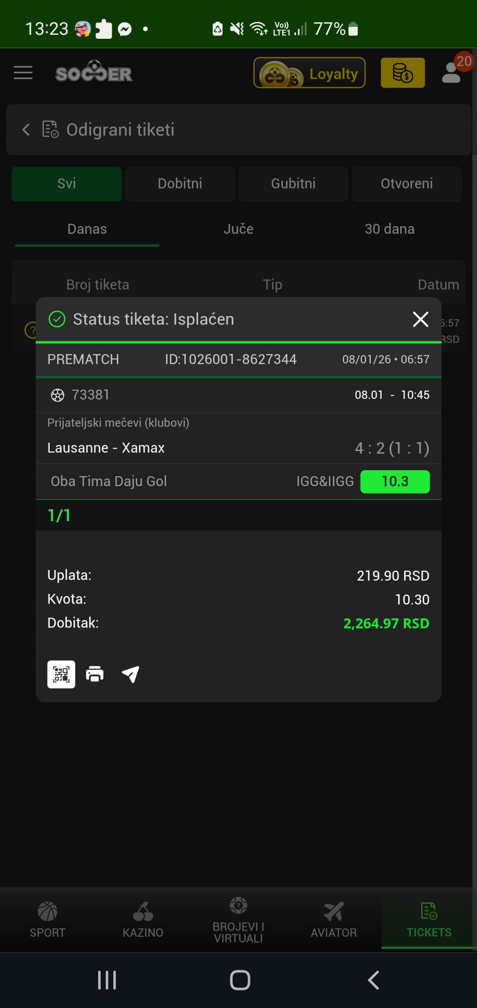 Na prosloj objavi bilo je komentara kako se jedini igrac odigra i padne, i to je istina, ovih par dana jesam u losijem nizu u odnosu na to kako je mesec poceo, ali da neki znalci koji se prave pametni misle da ne znam nista, ne bih se bas slozio s njima, onaj ko cita ovo pronacice se Svakako ja ne odustajem i tipove cu se truditi da dam svaki dan jer je to proces moje analize i mog rada prosto ja prvi verujem 100% u sebe jer odatle sve pocinje, takodje vodi se statistika za ceo mesec januar gde sam na svakog igraca ulagao po 1 Unit, trenutno sam idalje u +, 1.2 Unita, Znacajno se smanjio profit u poslednjih par dana, ali je idalje mesec u Plusu, na meni je da se potrudim da to izvucem sto je bolje moguce a onima kojima ne odgovaram, sta da kazem sem ne morate da pratite nista, jer je ovo sve moja dobra volja i nista drugo.