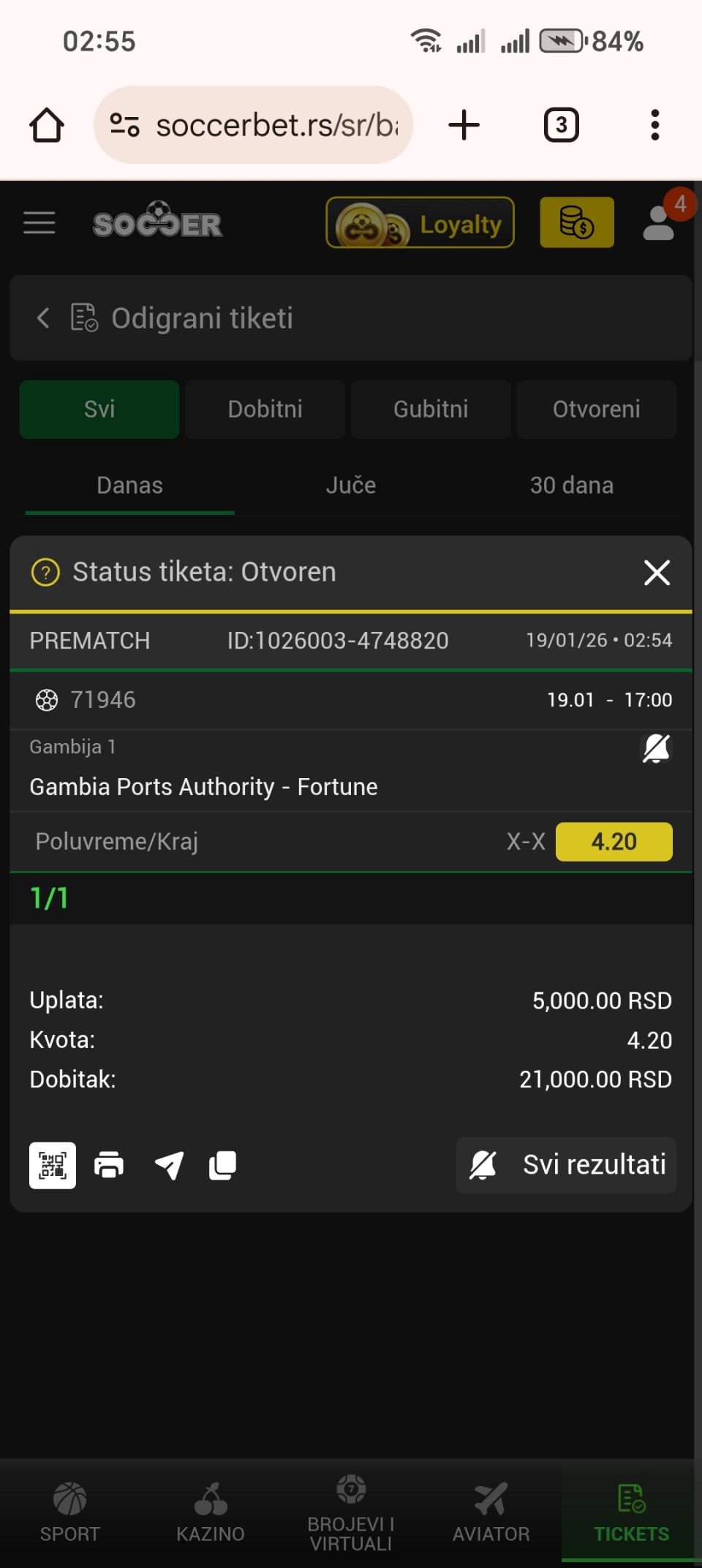 tip: over 3.5 (74 minut trenutni rezultat 2:1)
