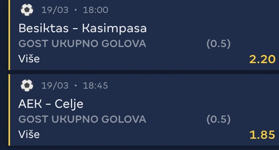 Predlozi za Ligu Evrope i Konferencije od 18:45 u komentaru ispod, ako stignem…