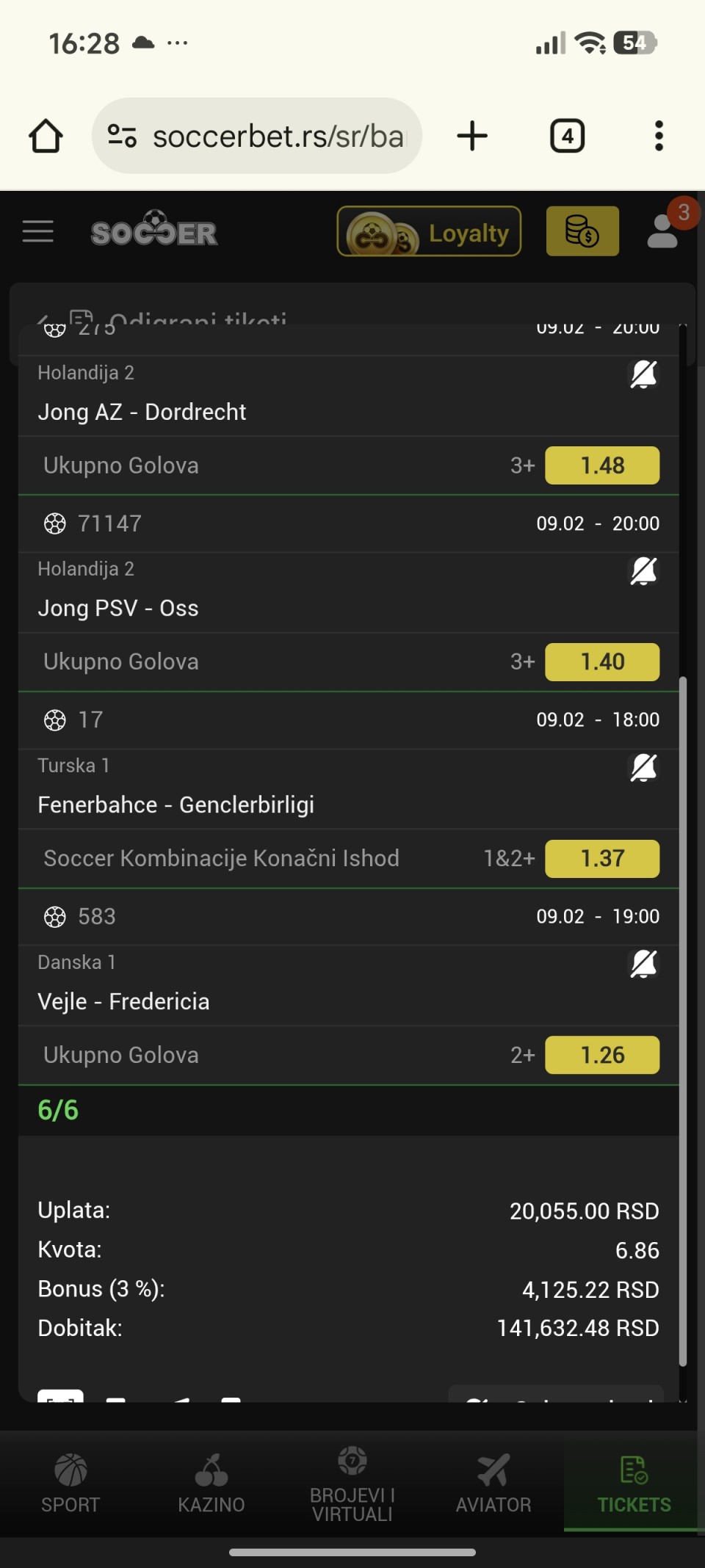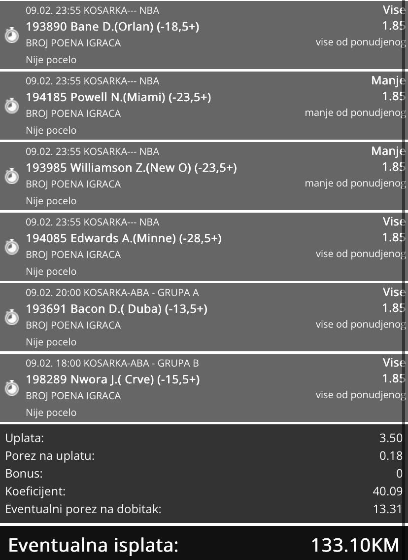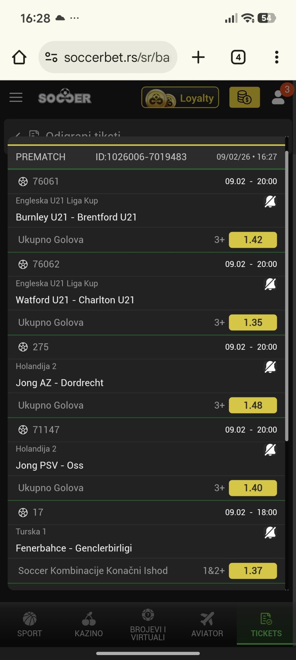 Ne znam sta je ovo danas, jos mi je jedan ranije danas tiket prosao, nisam ga bio okacio, Sevilja i Kopenhagen mi dali golove u nadoknadi za prolaz,