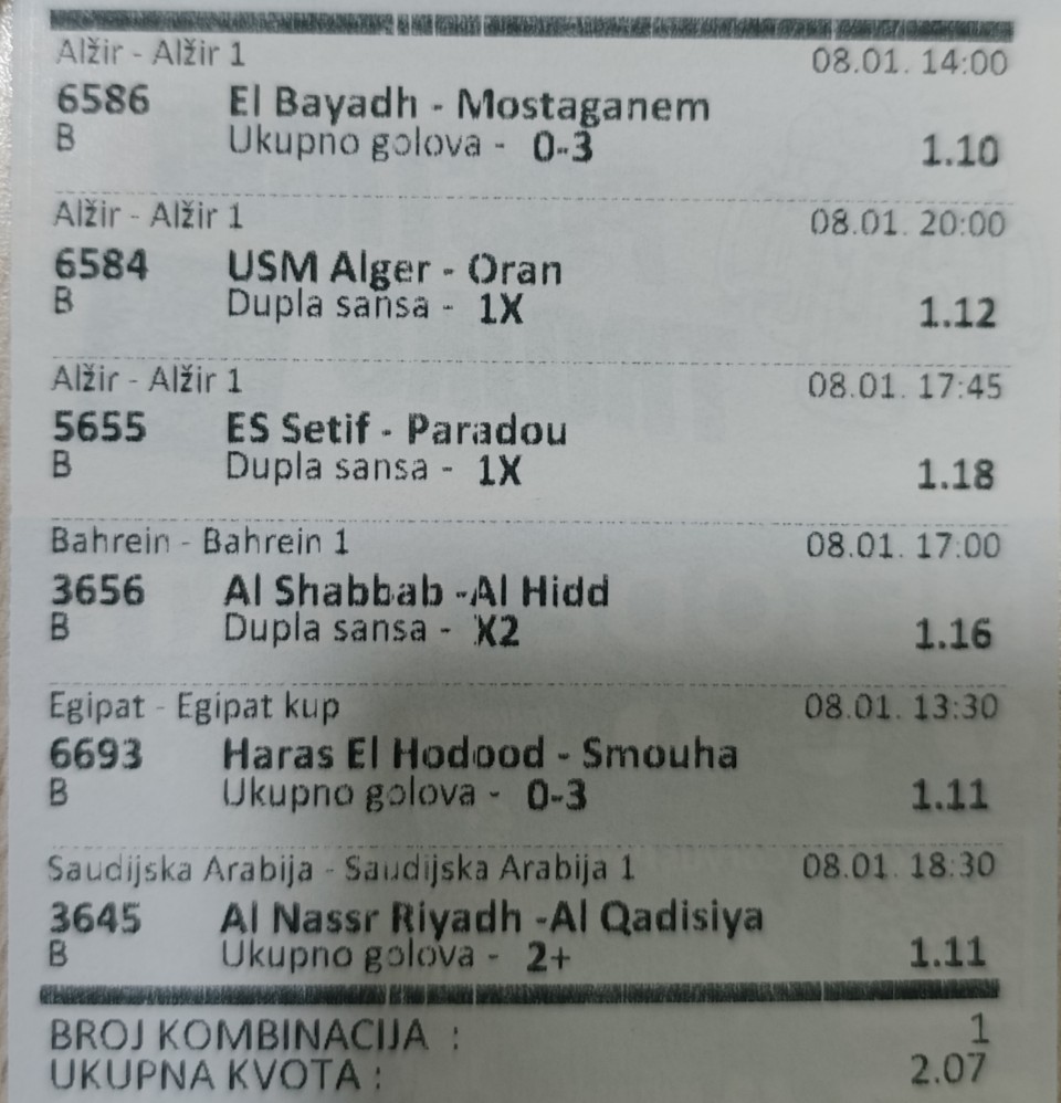 Ja danas postim, pa tako i od kladionice se uzdržavam ali napisaću po koji tip:
