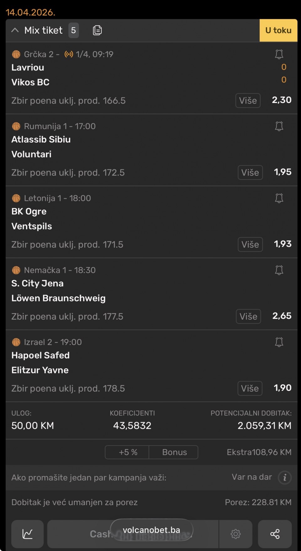 ukupna kvota: 1.99