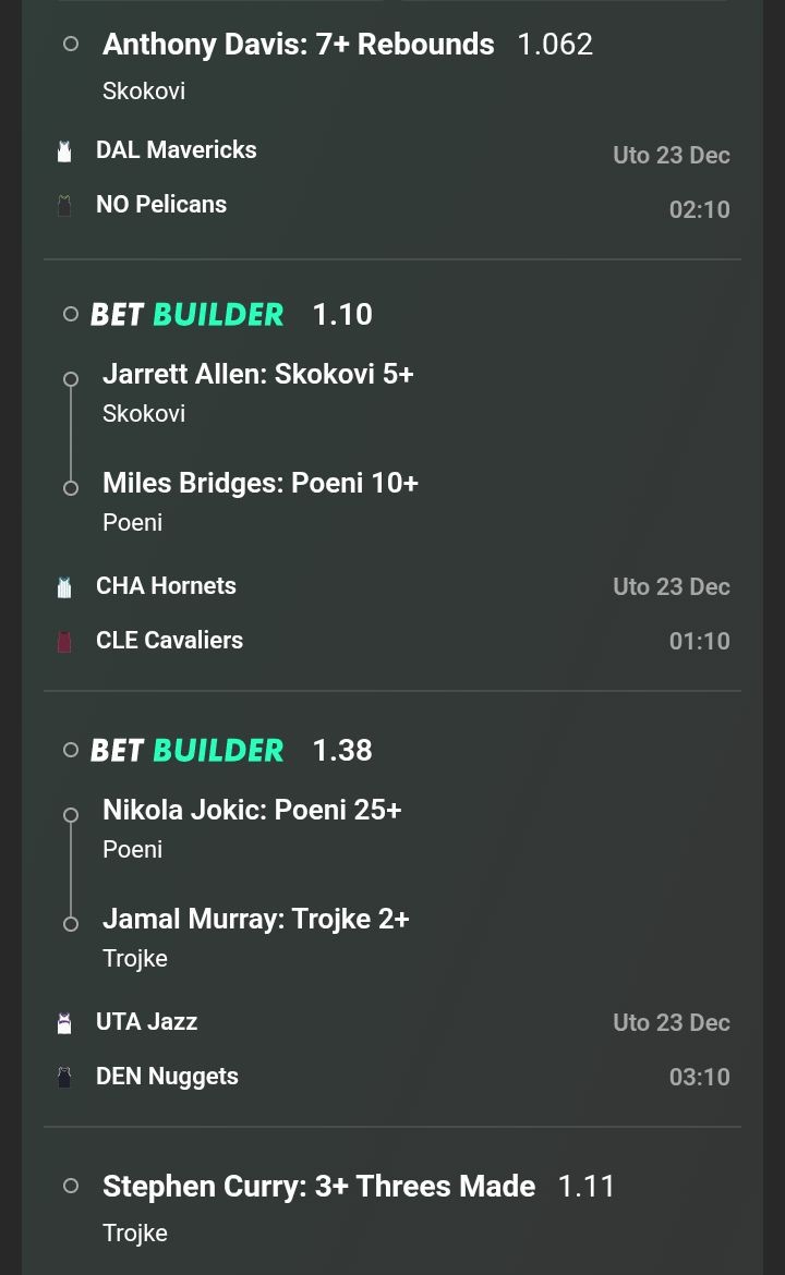 Ocekivao sam mozda vecu kvotu jer je Denver favorit medjutim imam jak osjecaj ovdje na Rocketse. U zadnjih nekoliko sedmica Denver slavio dva puta u tijesnim zavrsnicama, pa ja ovdje nekom cudnom kladionicarskom filozofijom idem sa Rocketsima. Slican mec kao sinoc izmedju OKC-a i Minnesote, ovdje se stvara vec rivalitet izmedju Senguna i Jokica, pa bi kao alternativni tip predlozio i Senguna na 22.5 koja je i vise nego zahvalna za glavnog igraca koji uzima dosta suteva. Dakle nikakva posebna analiza ali kroz vrijeme smo naucili da analize na NBA i nemaju nekog smisla, ovdje radi samo osjecaj, a posto kvota na Denver mnoge mami, ja biram Houston!!