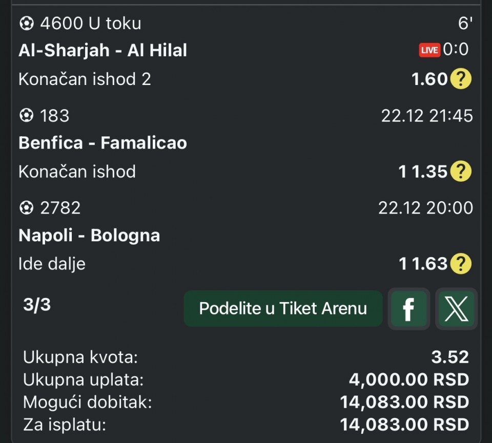 01:00 New Orleans vs Indiana H2 (+3.5) @1.70 mozzart 2 hours 38 minutes ago