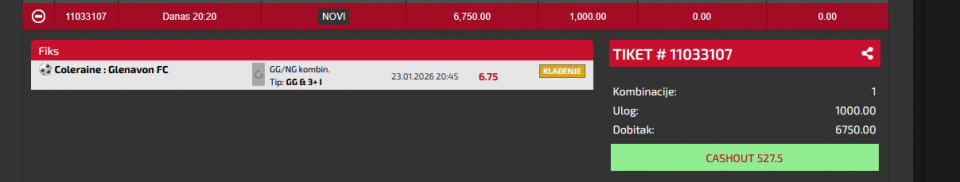 zbroj golova Nikola.Roganović PREKO 2,5 GOLA KOEF 1,38-3