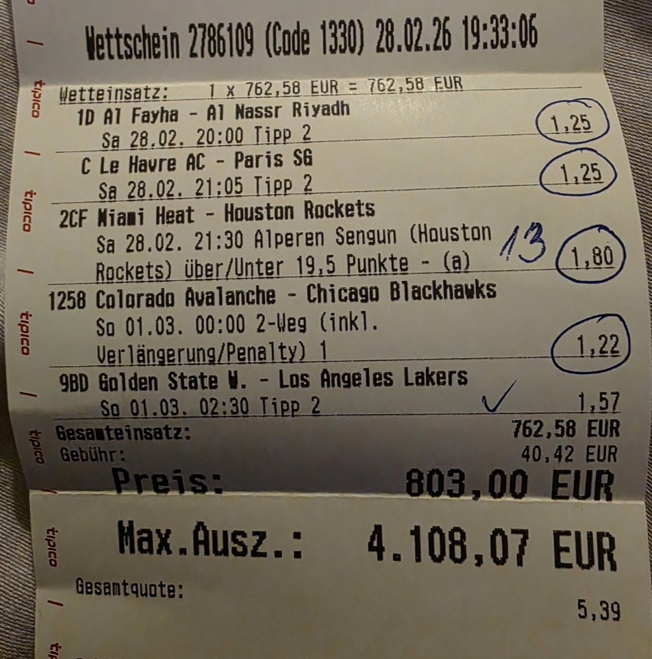 14:00 Lausanne-Basel GG @1,50
