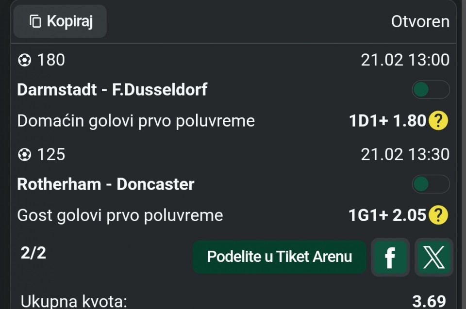 🇩🇪 13:00 Darmstadt - F. Dusseldorf DII1+ (1.58)/ Fraser Honbry daje gol (2.40) ili Matej Maglica daje gol (9.50)