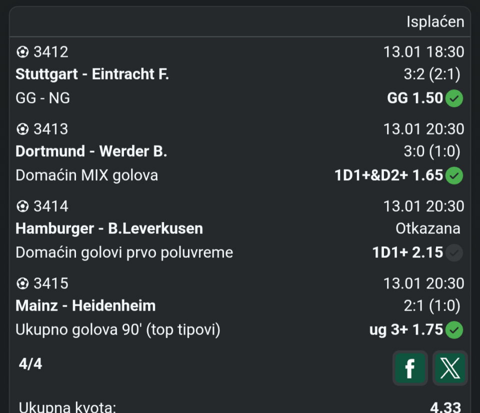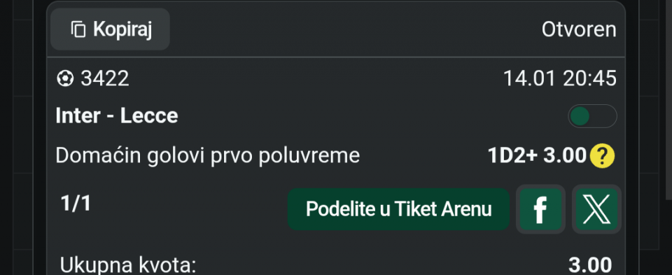 Juce 1/2 winnn✅ samo Dortmund sjebo 30min nije mogao 2.gol u pp. Za danas samo inter d2+I