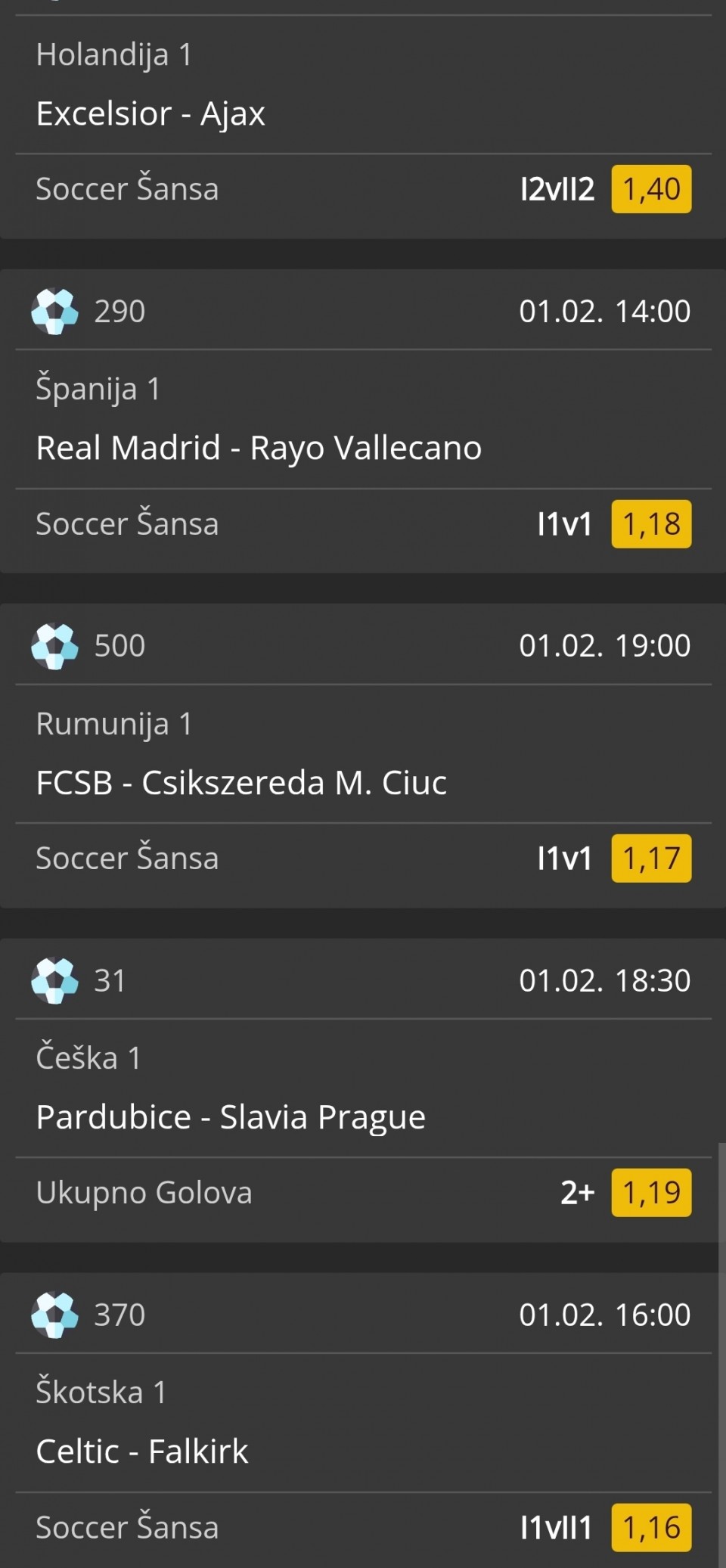 Evo od mene za danas izdvojio bih Levadiakos kao jacu kvotu TM1 2+, Eksklozior Ajaks GG isto dobra kvota i Betis TM1. 2+ neopravdano visokome kvote. Kombinujte pa Srecno.
