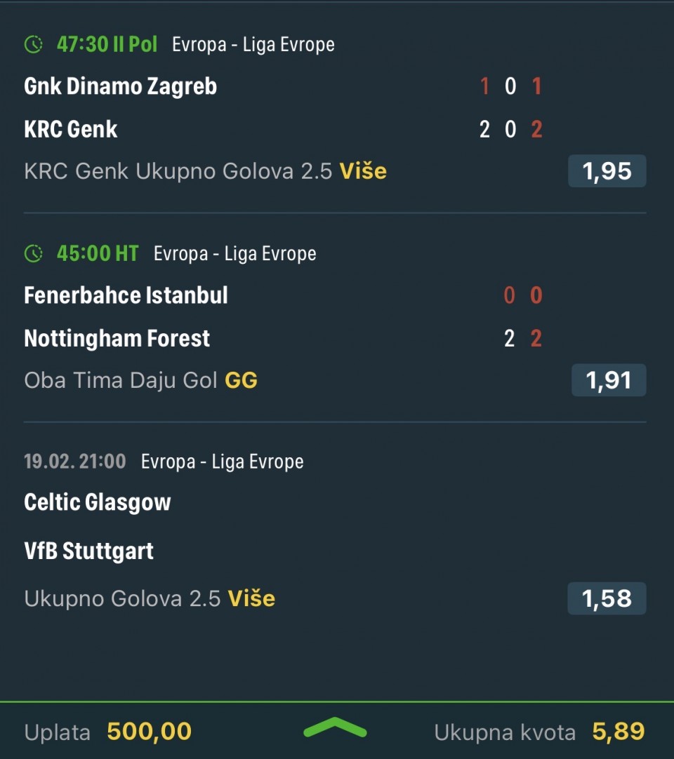 Само сам погрешан пар одиграо... 🤦 Требло је бити Зрињски - Кристал Палас... 🤣