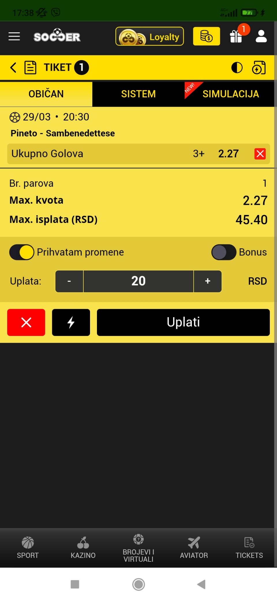 Moj tip: 17.5 PRA (1.90) Admiral
