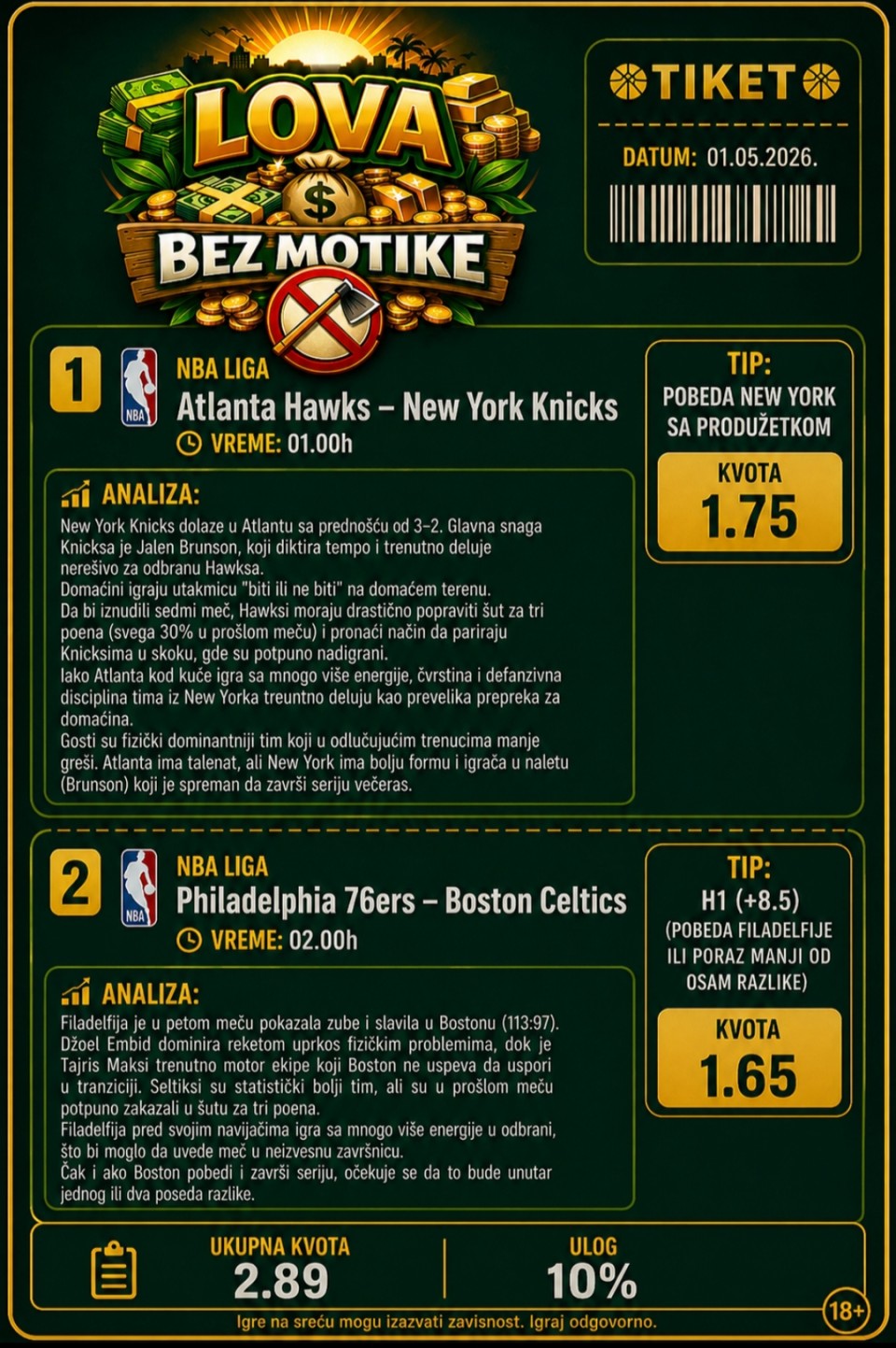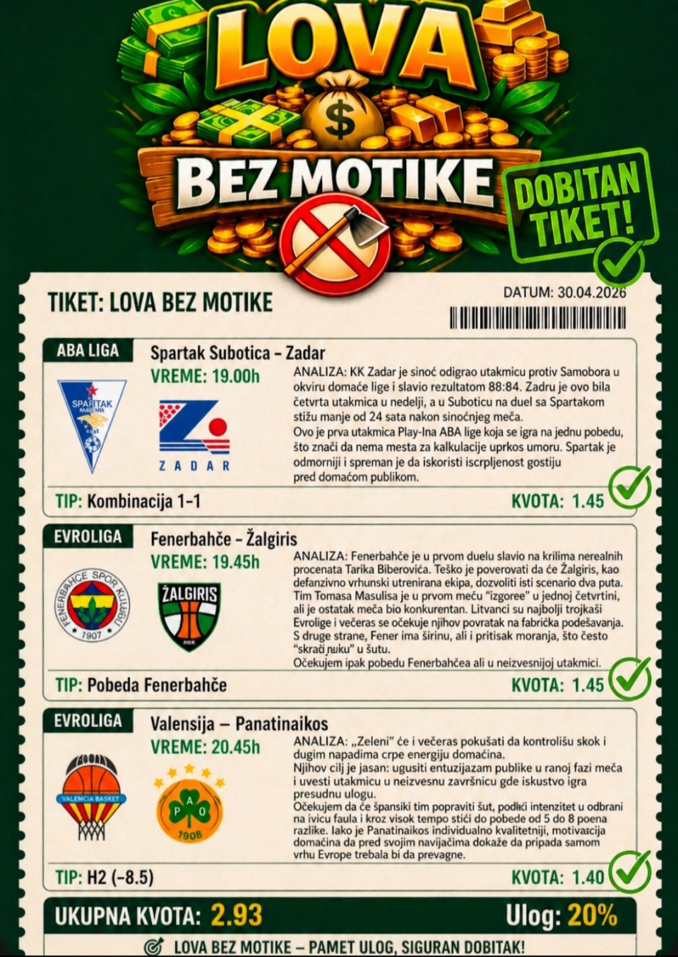 Vjerujem da Jodar nema šta da izgubi, da će izaći na megdan Sinneru i uživati u tenisu. Shodno tome, očekujem da koliko-toliko parira Italijanu i na koncu "pokrije" ovaj over gemova. Da imam malkice više muda igrao bi ga da uzima set, ali ne smijem. Neka uzme 8 gemova i mirna Bosna.
