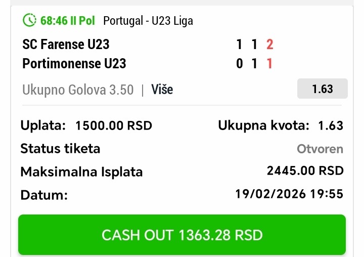 Evo jedan singl sa kupa od mene kvote 1.85 iz soccera