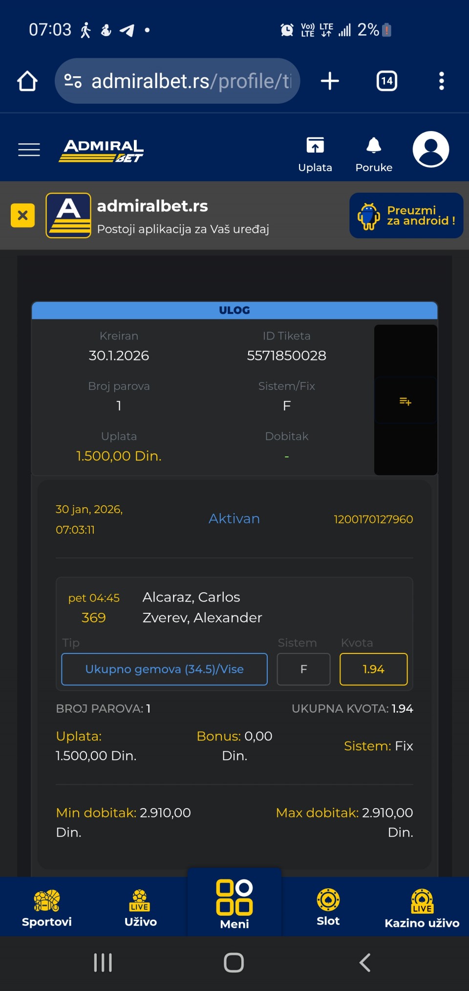 zeuss555 Ispratio prva 3 bravo kralju 37 minutes ago
