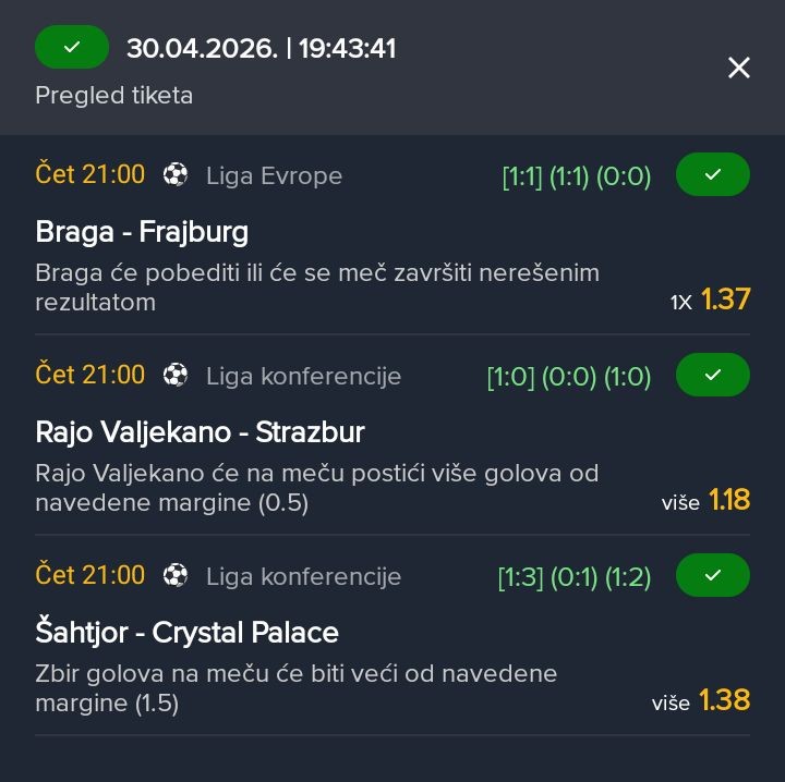 Ko ima ovog molina 80posto da ce dobit treba mu za finale ovaj drugi je proso nisam stigao prije 1.70 koefcijent