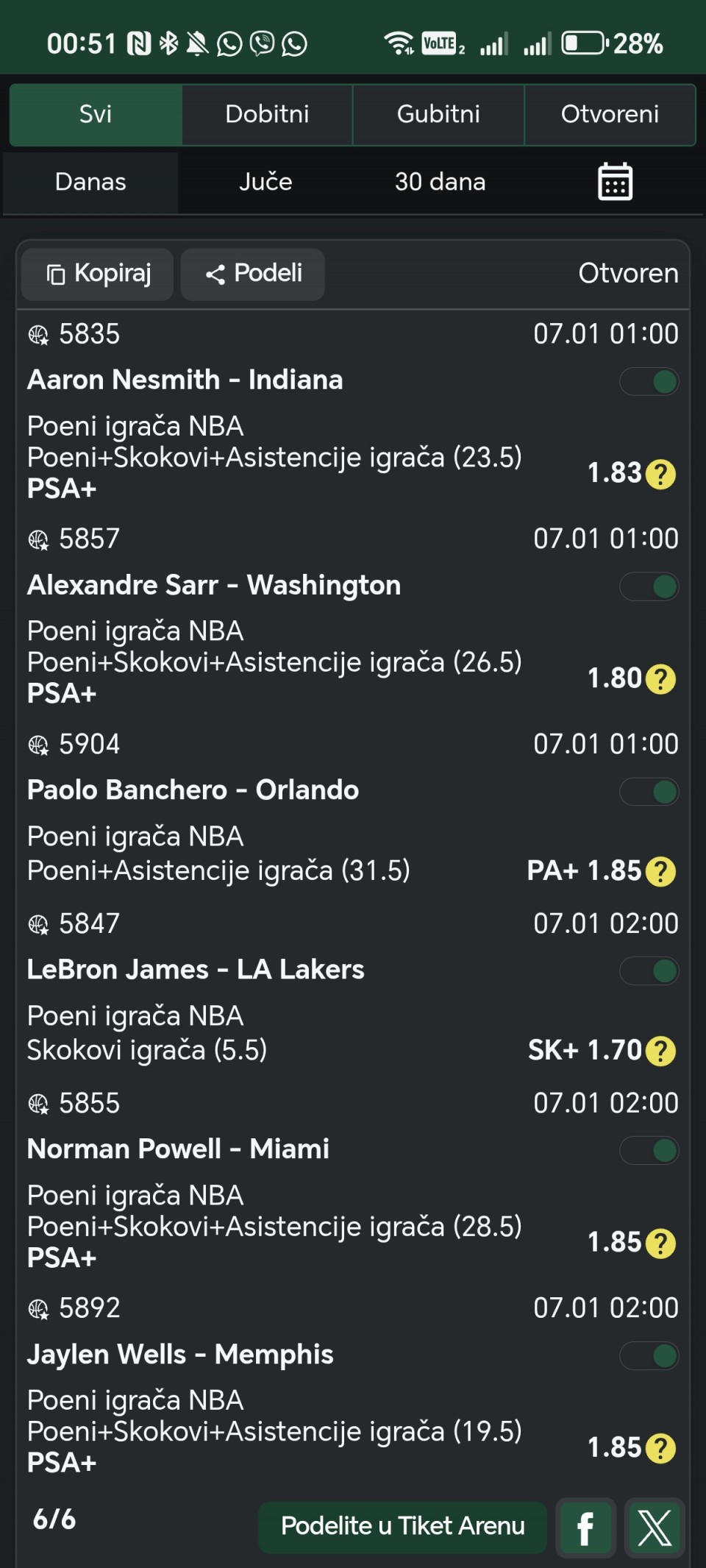 20:15 Cedi Osman alt12,5+ @1,60⛔️ 11