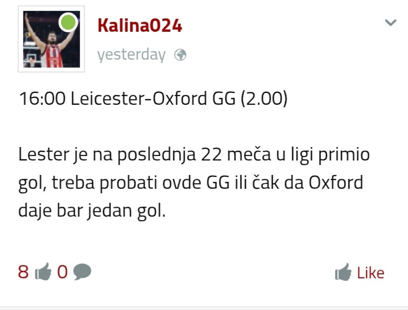tip: over 2.5 (67 minut trenutni rezultat 2:0)