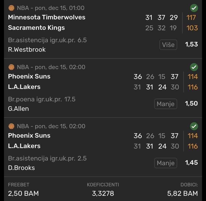 Predvodnik tog p(re)okreta je Walker koji je ušao u NBA ritam i koji na poslednjih 5 utakmica u svim takmičenjima ne postiže ispod 20 poena. Zasluženo je dobio odmor sad za vikend i u ovu utakmicu ulazi maksimalno svež. Kako odbrana Dubaija na njihovom parketu u poslednje vreme nije baš sjajna, pošto primaju oko 90 poena, verujem da će biti mogućnosti da Walker nastavi svoju seriju od 20+ poena. Kada je uspeo da jednom Žalgirisu, koji ima najbolju odbranu u ligi na svom parketu, postigne 23 poena za maltene isto toliko minuta, stvarno mislim da ga treba iskoristiti dok je u ovakvoj formi i da ne bi trebalo da ima problema sa trenutnom odbranom Dubaija.