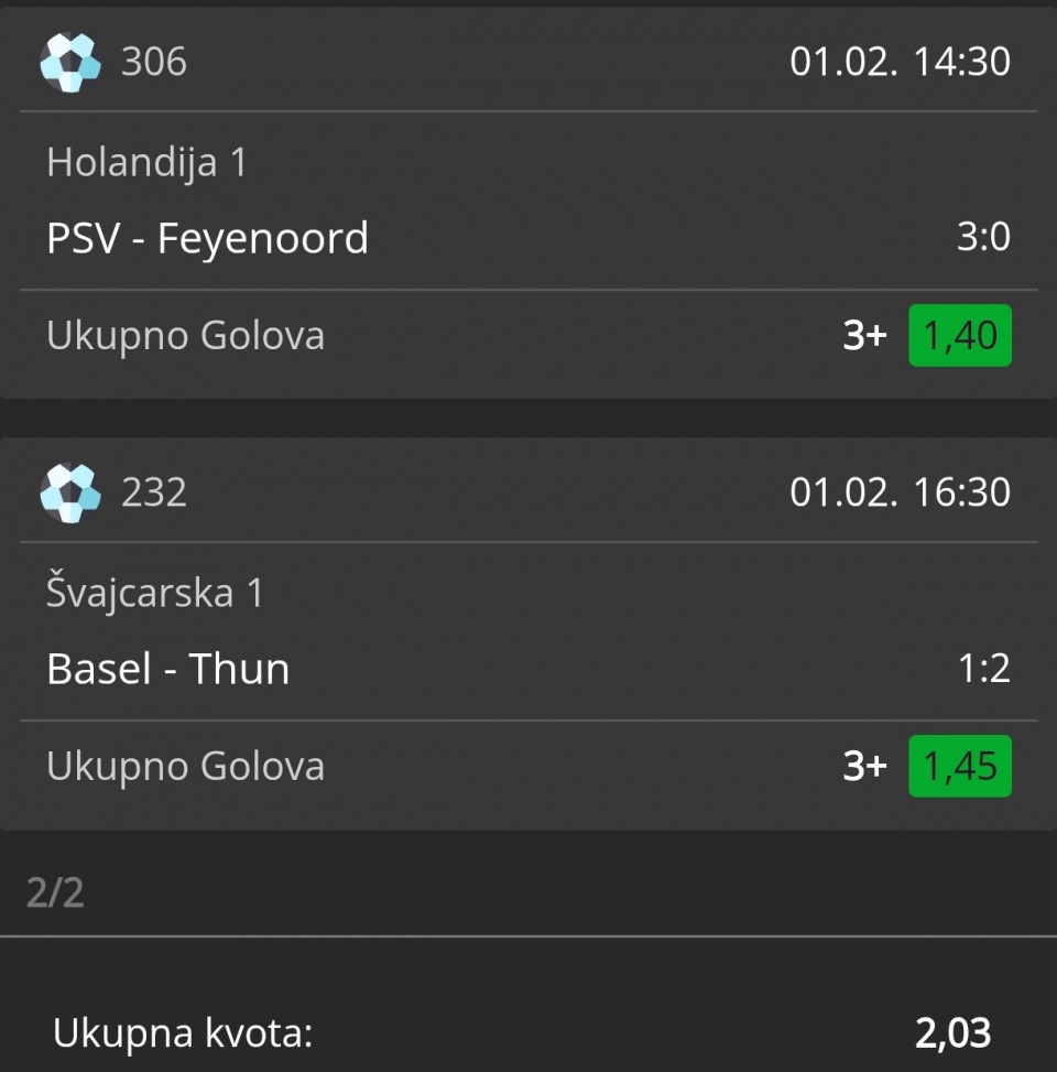 Evo od mene za danas izdvojio bih Levadiakos kao jacu kvotu TM1 2+, Eksklozior Ajaks GG isto dobra kvota i Betis TM1. 2+ neopravdano visokome kvote. Kombinujte pa Srecno.