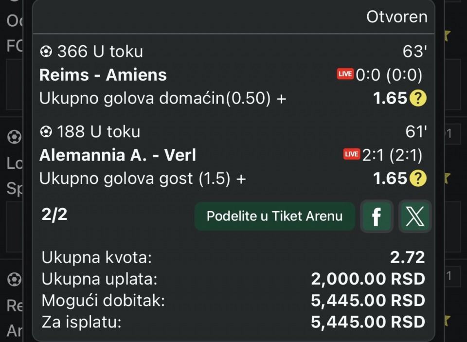 Slike tikete ne postavljam iz svojih razloga kome se sta svidja neka probere ili neka zaobidje post. Hvala i srecno 🎉💪